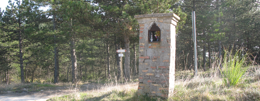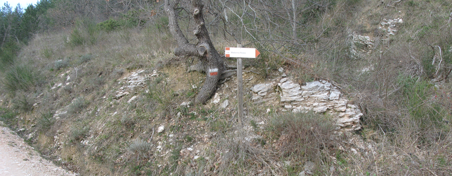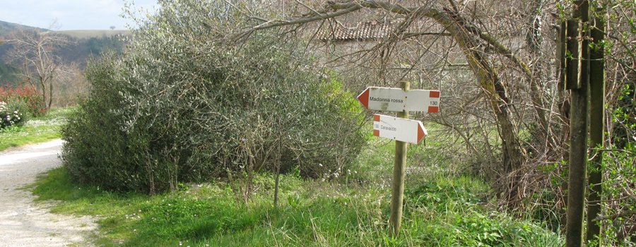 La risalita ha termine sulla strada provinciale delle Cesane, in corrispondenza di una piccola edicola votiva denominata “Madonna Rossa”. Volendo proseguire nell’escursione, a poche decine di metri di distanza continuando sulla strada provinciale, si può raggiungere il sentiero 131 che attraversa il comprensorio e si collega con numerosi altri tracciati.