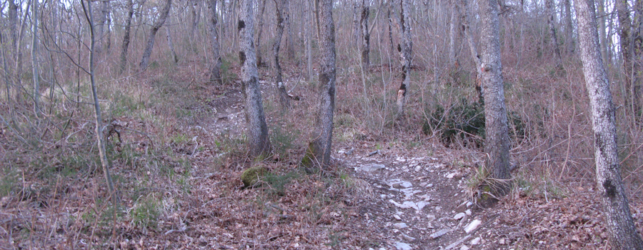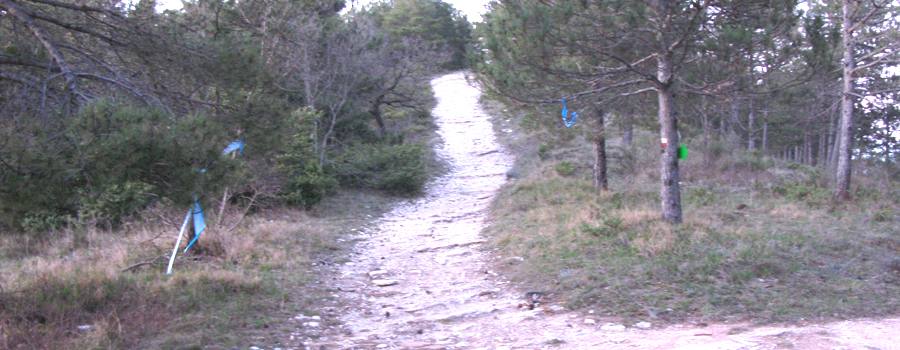 Il falsopiano termina nei pressi di una vecchia cava, oltrepassata la quale si ricomincia a salire all’interno del bosco, con pendenze ancora più dure dell’ascesa precedente, su fondo a tratti sterrato ed a tratti pietroso, fino a raggiungere e superare una delle tante strade forestali di servizio che caratterizzano la parte sommitale dell’altopiano, con la vegetazione che si dirada lasciando intuire la vicinanza della vetta.