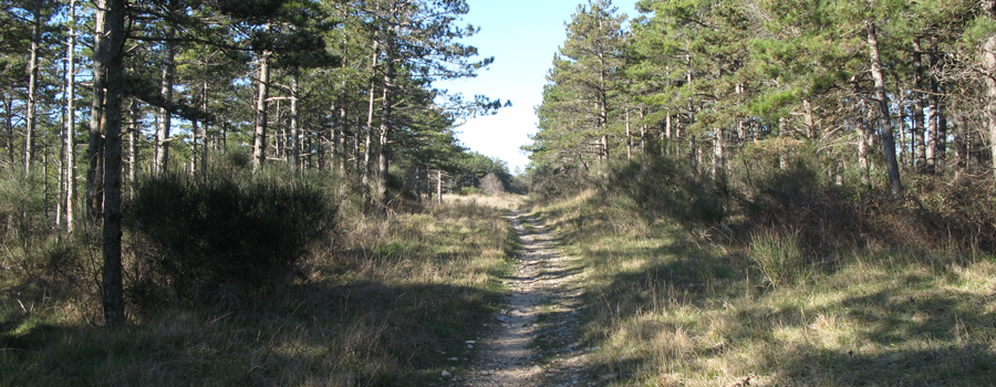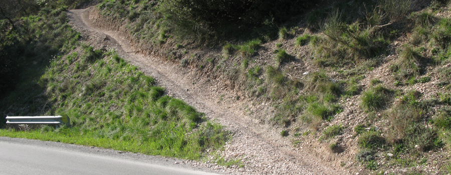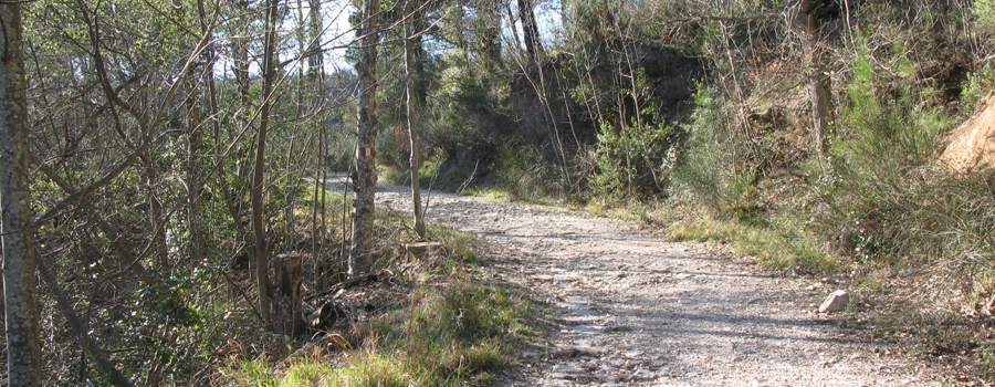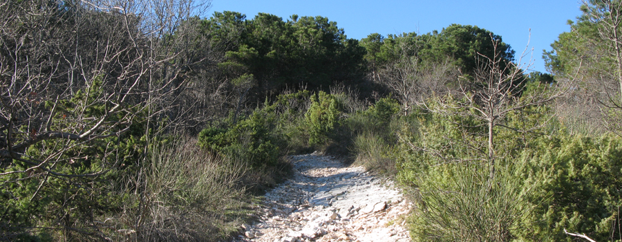 Al termine di questa prima parte, dove si guadagnano rapidamente circa 100 metri di dislivello, si incontra una strada sterrata, di servizio ai mezzi forestali, che si segue per un buon tratto, intervallata da alcuni tagli all’interno del bosco che consentono di evitare gli ampi tornanti e salire più rapidamente.