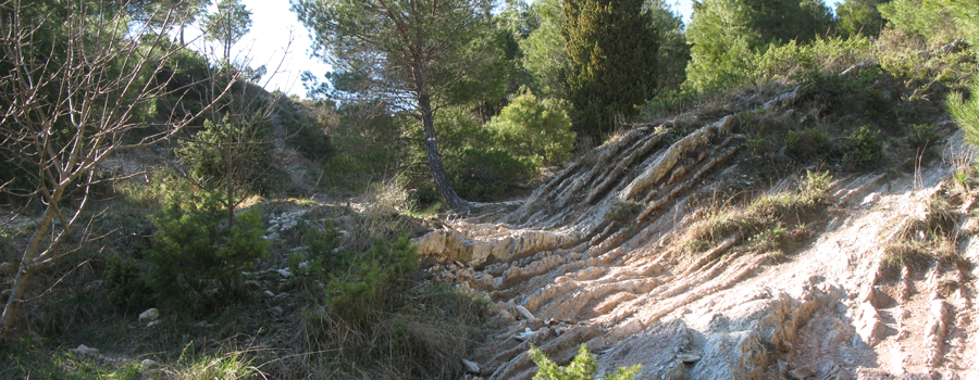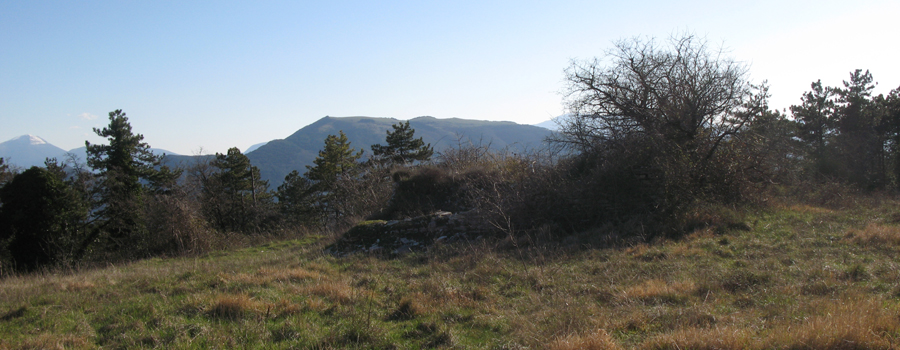 Oltrepassato il piccolo corso d’acqua, si sale in maniera piuttosto dolce fino alla casa colonica denominata Ca’ Bogo, da dove la traccia s’inerpica nuovamente (su fondo sassoso), seguendo il crinale, con la vegetazione che si apre lasciando la possibilità di osservare, volgendosi di spalle, un bel panorama su di un ampio tratto della Valle del Metauro ed in particolare sulla Gola del Furlo, sullo sfondo della quale svettano le imponenti cime del massiccio del Catria.