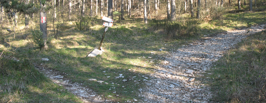 Il sentiero 138 delle Cesane prende il via dalla provinciale Flaminia, in località Ponte Rotto, poco dopo l’abitato di San Lazzaro, nei pressi di un vecchio passaggio a livello con la ferrovia, ora soppressa, che collegava la vallata del Metauro alla città di Urbino.