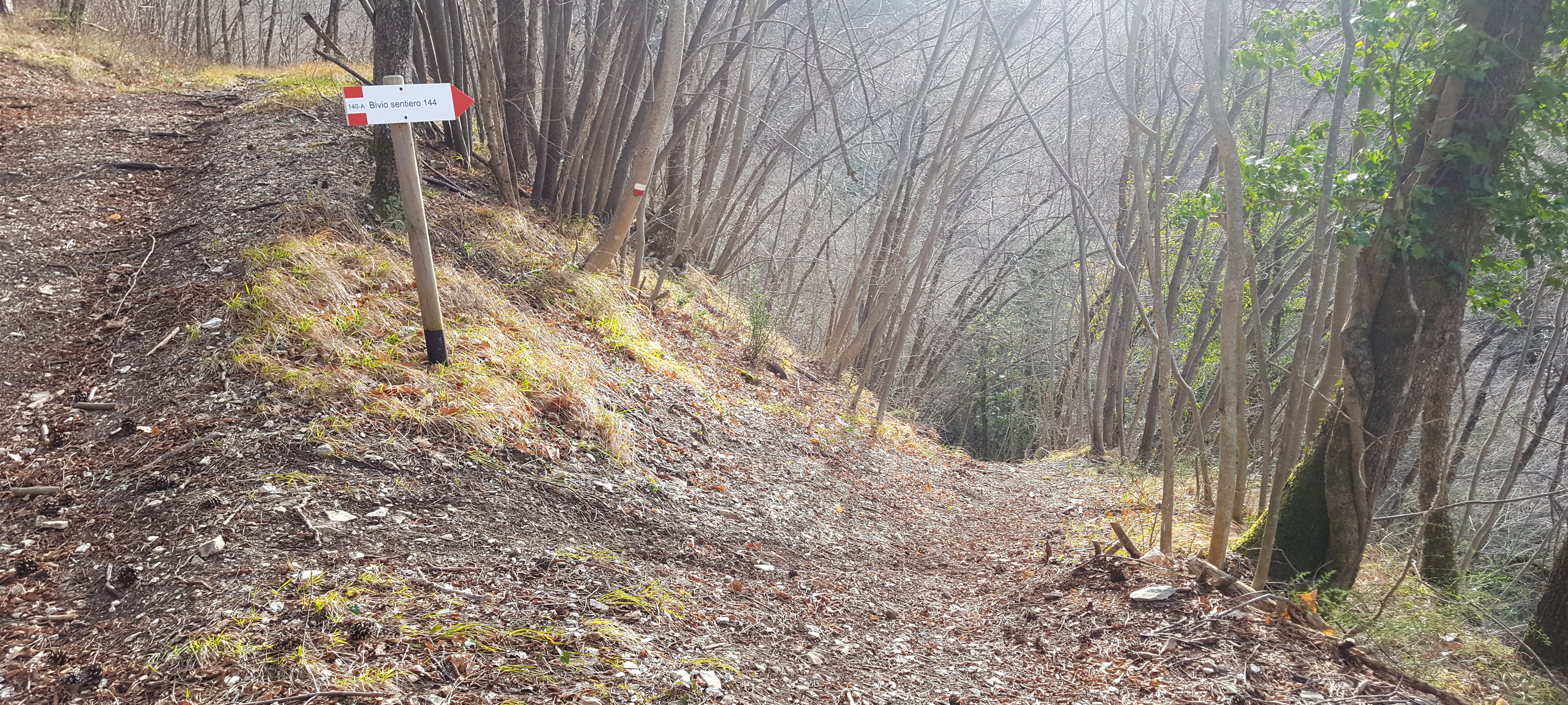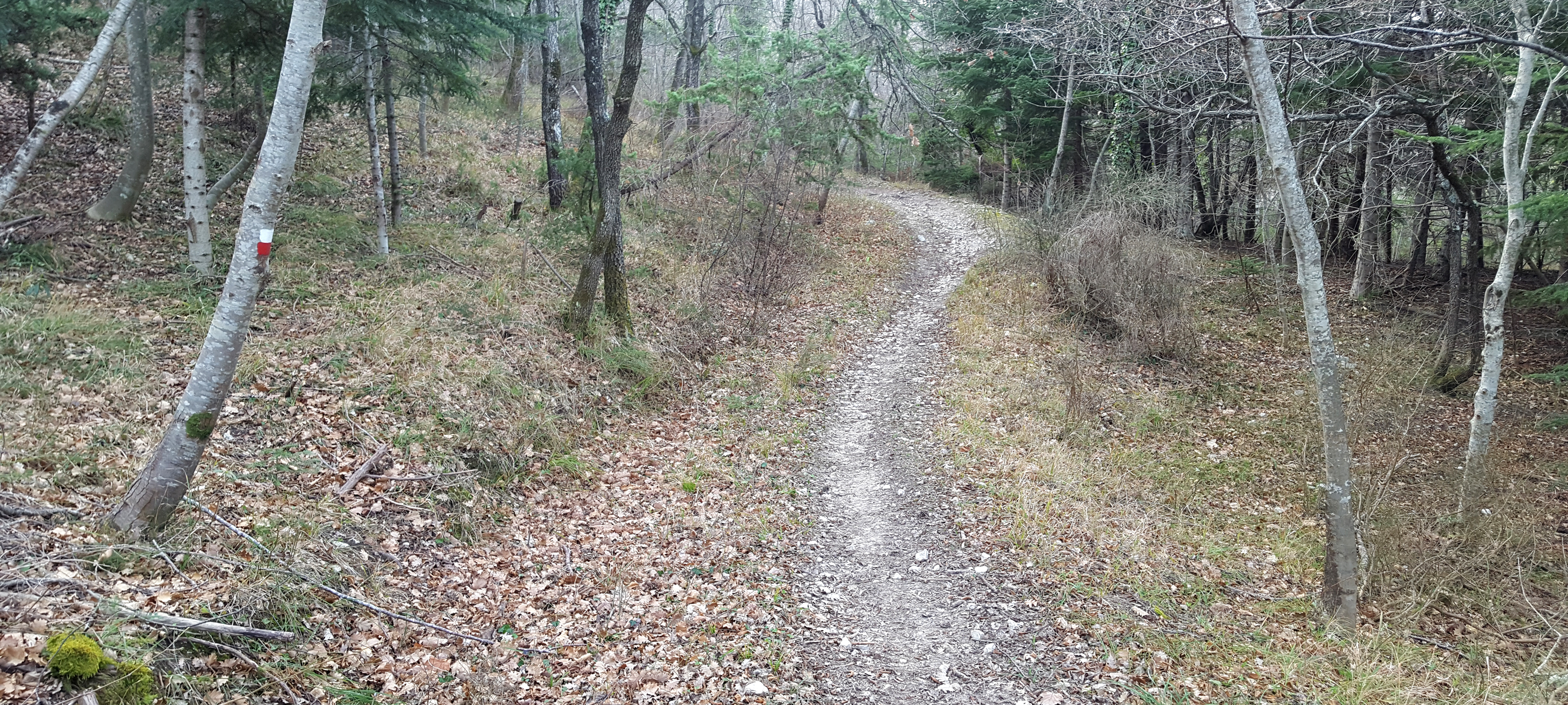 Il tracciato termina dopo circa 20 minuti di salita, incrociando il sentiero 144 che collega Belloca con la parte più elevata dell’altopiano delle Cesane, con la possibilità di raggiungere in breve l’area attrezzata nei pressi del ristoro La Baita.