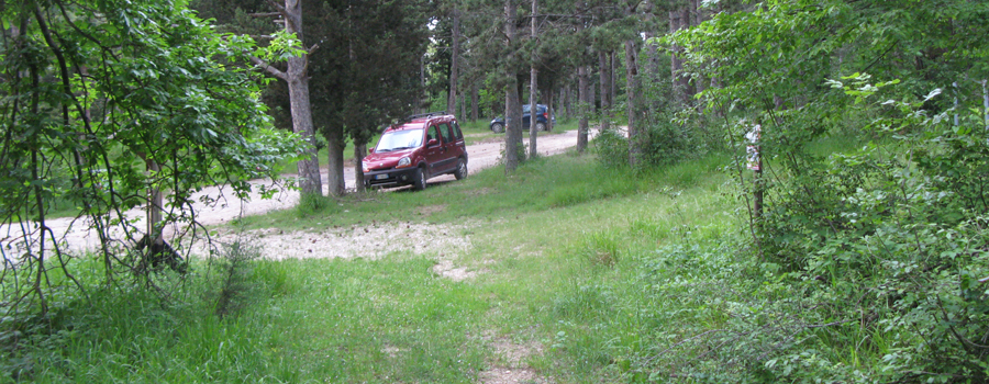 Il tratto ripido termina in corrispondenza dell’Azienda Forestale Campo d’Asino, dove si incrociano prima il sentiero 129, che si inoltra nel bosco sulla destra, e poi, percorsi alcuni metri su strada asfaltata, il 143 sulla sinistra. In questo punto, nei pressi di un’ampia piazzola utilizzata come parcheggio, ci si addentra nuovamente nel bosco dove si riprende a salire, con media pendenza, parallelamente alla strada provinciale, fino a raggiungere la "Piana Bertinelli" dove il sentiero ha termine, incrociando il 137 che sale da Fossombrone.