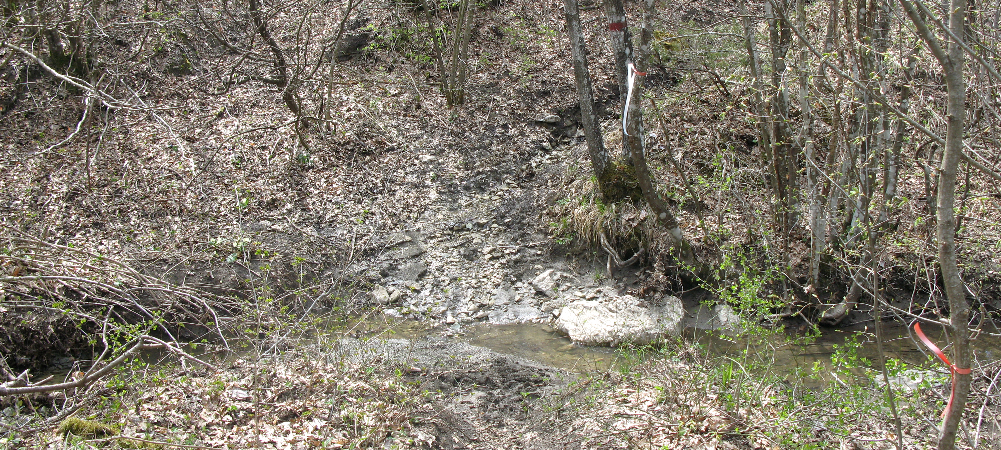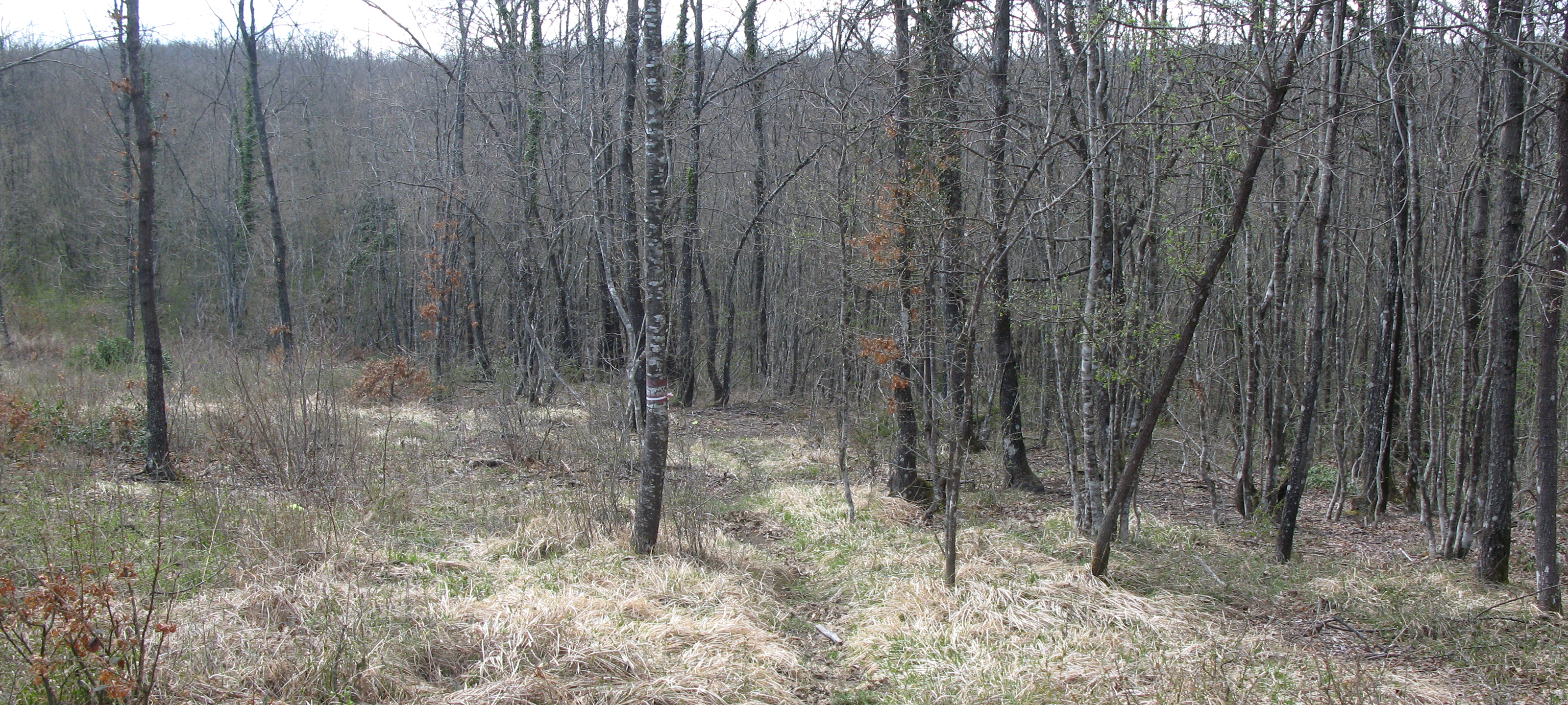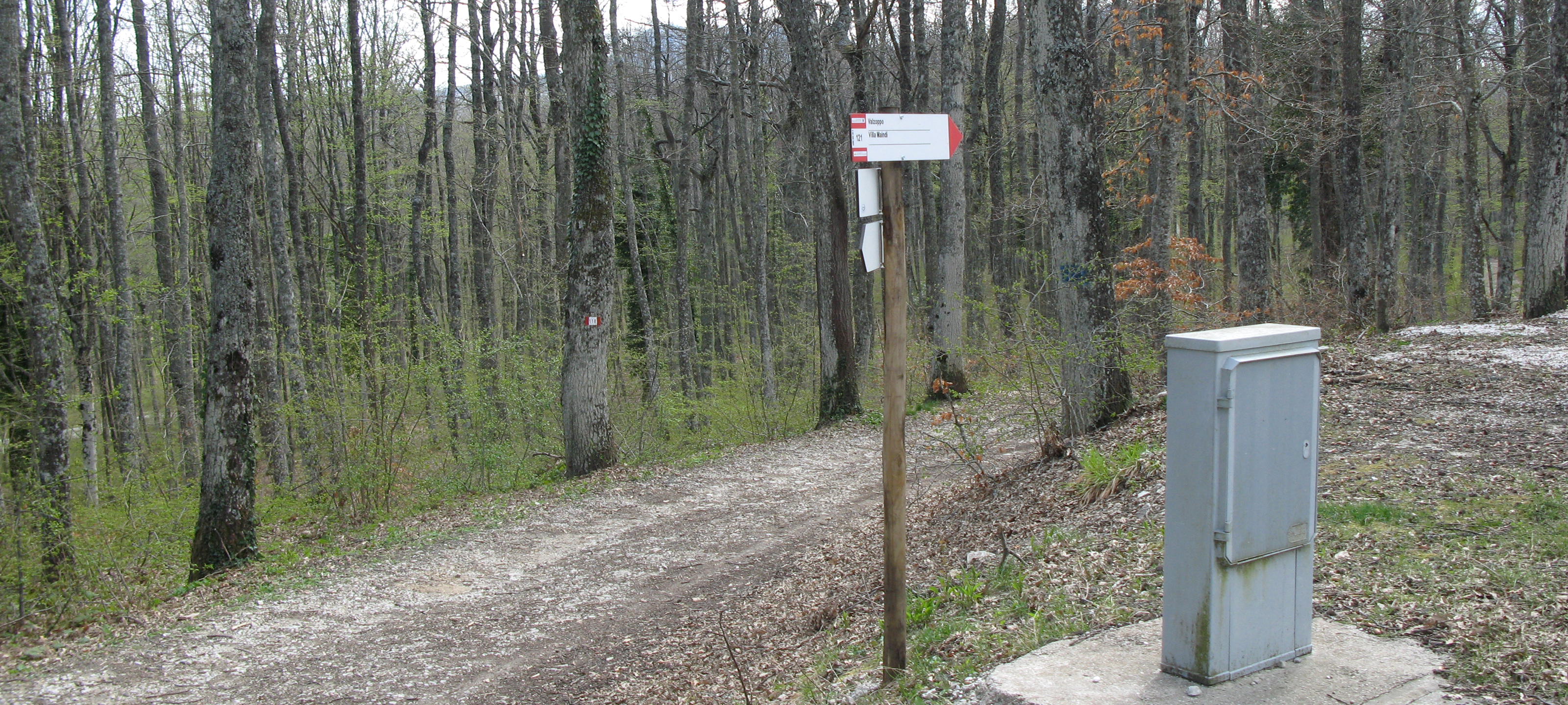 In breve si raggiunge il vecchio segnale indicante la località “Valzoppo”, dove sono presenti indicazioni per il sentiero 95 verso Villa Maindi e Serra di Valpiano; da questo punto la segnaletica si fa ancora più difficile da individuare, mentre l’ambiente muta abbandonando la comoda spianata per iniziare a scendere ed attraversare gli impluvi di due piccoli corsi d’acqua, che si oltrepassano con facili guadi.