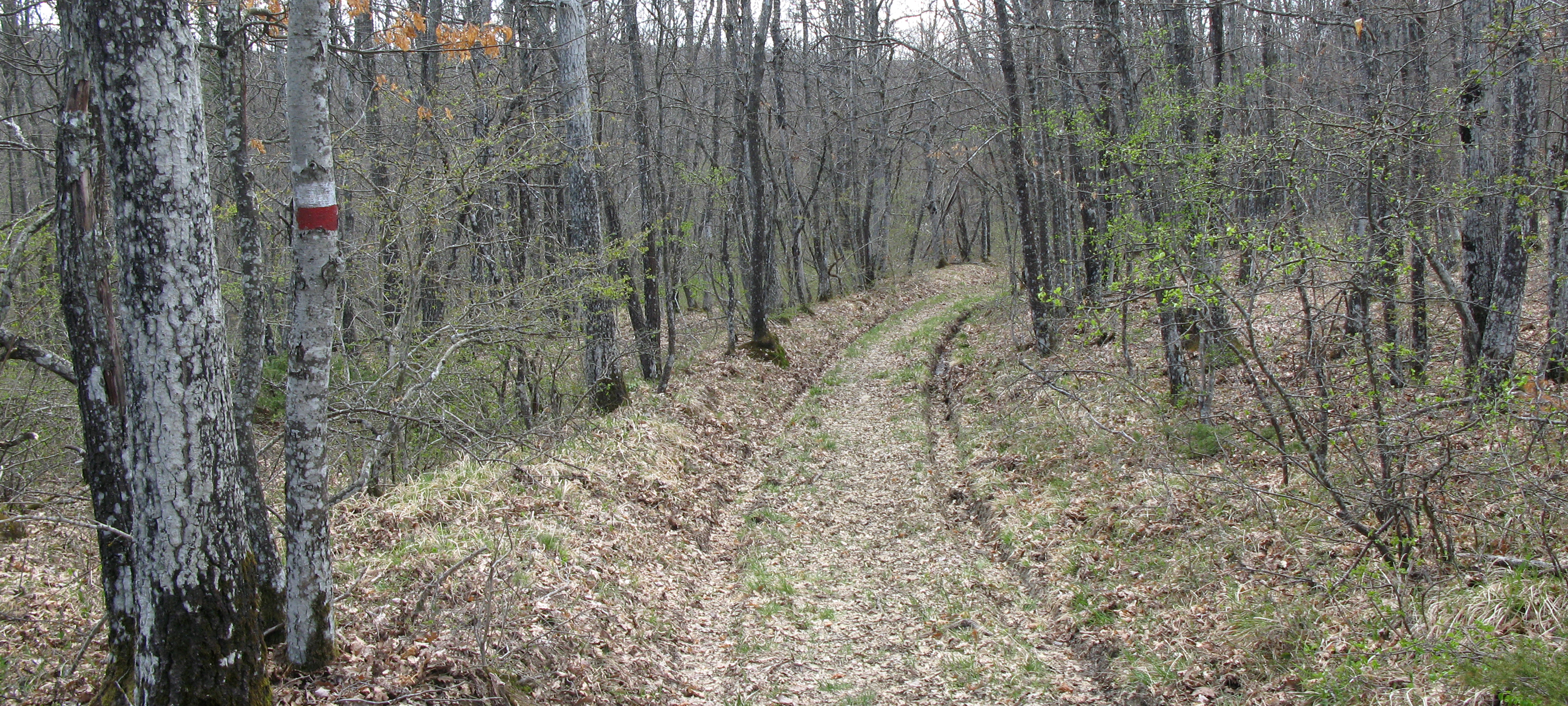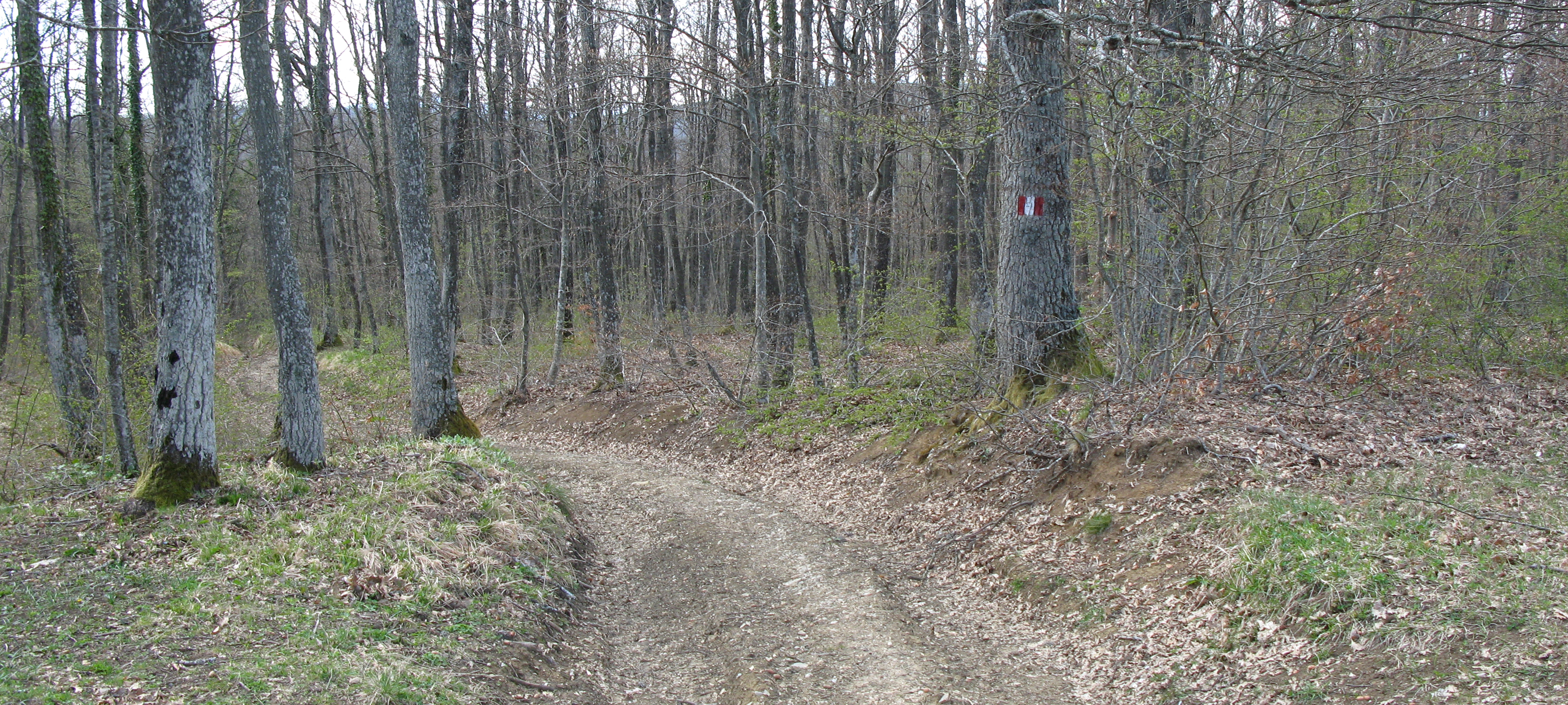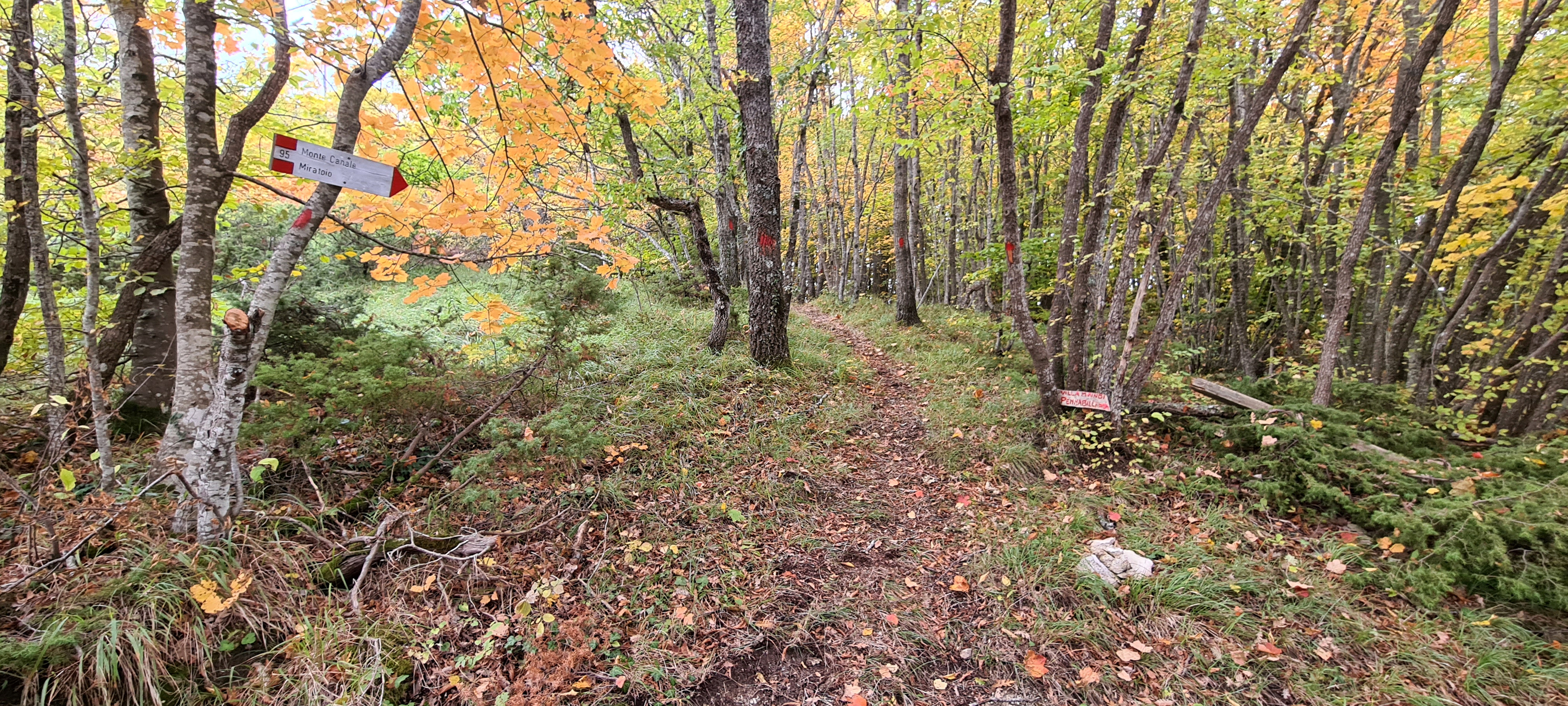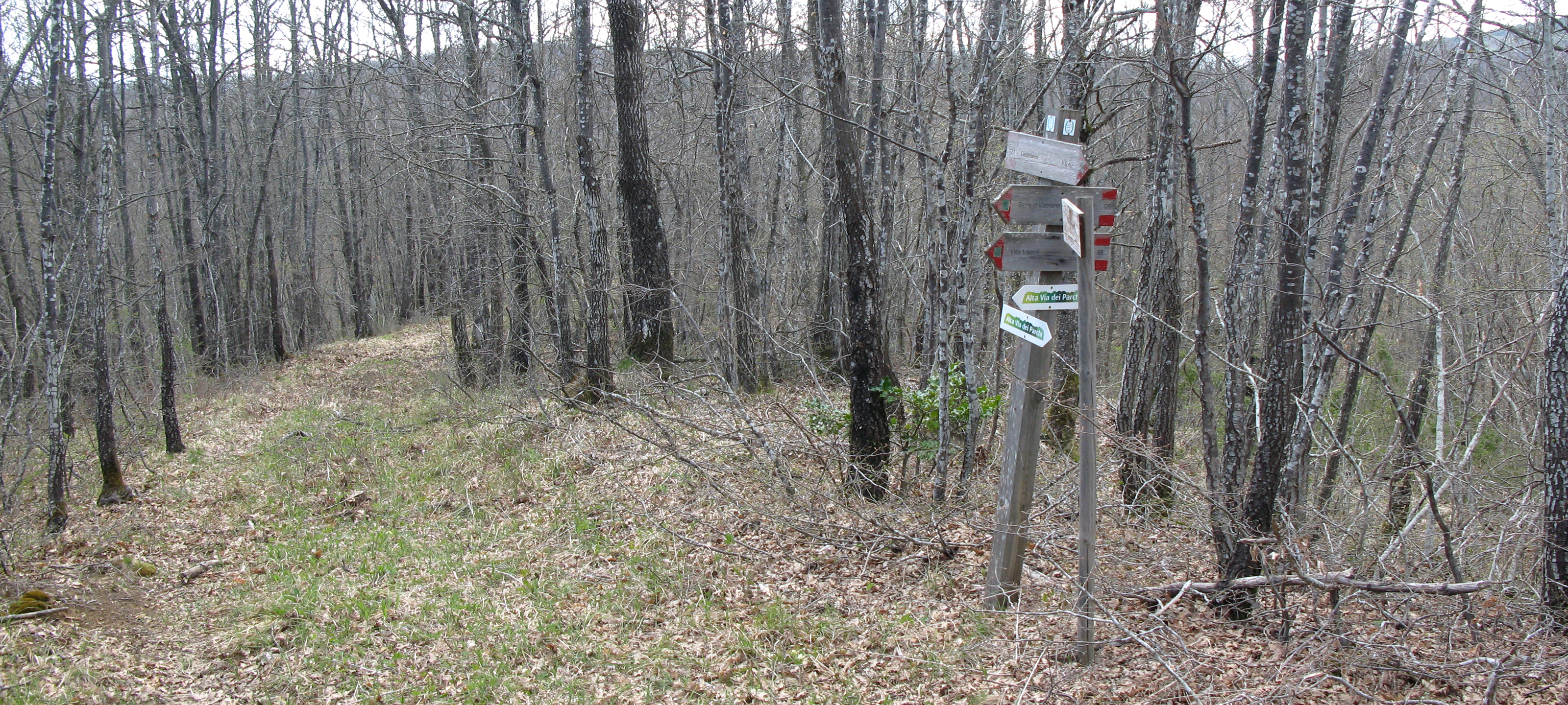 In questo tratto vengono in aiuto dei “fiocchi” realizzati con nastro bianco e rosso ed appesi agli alberi (segnaletica non ufficiale ma molto utile), che permettono di orientarsi e superare i passaggi più intricati.