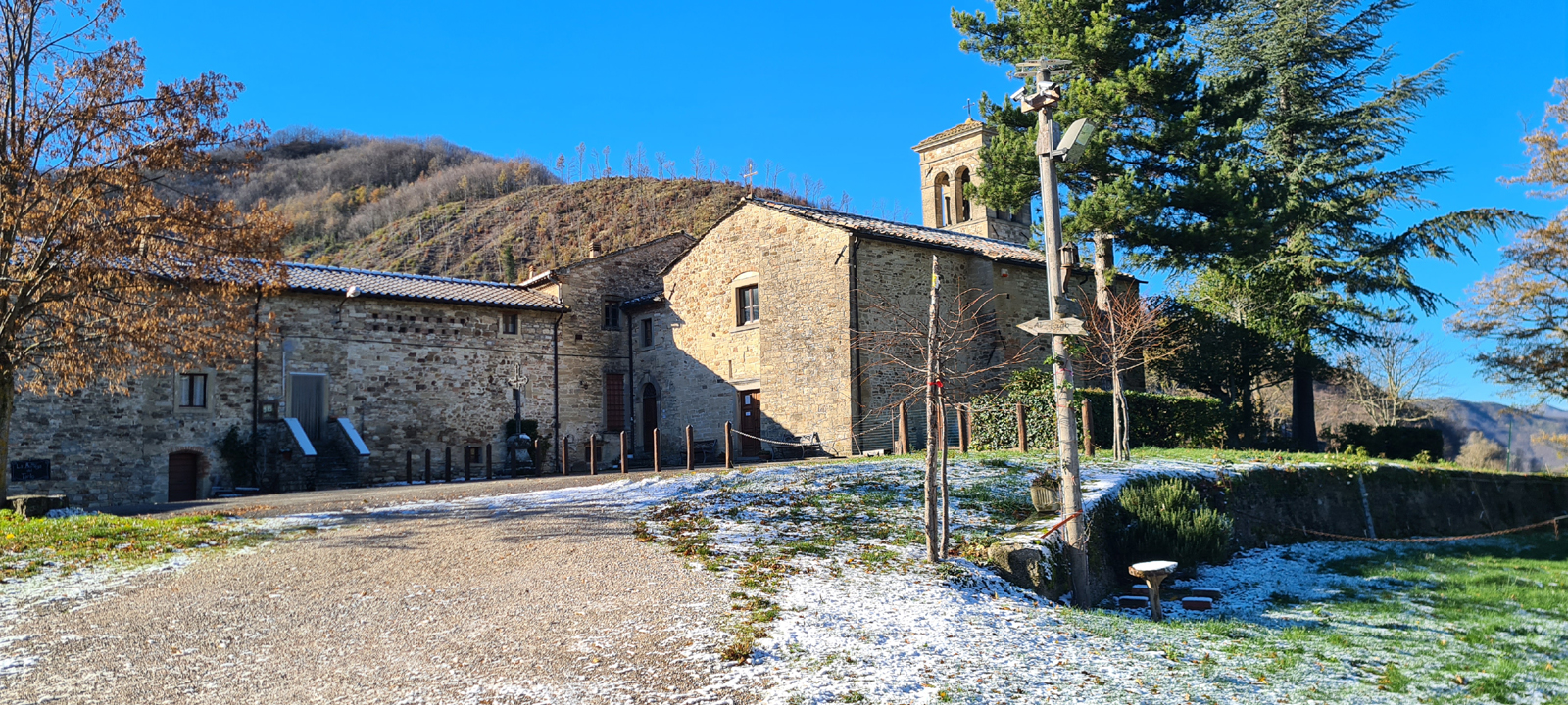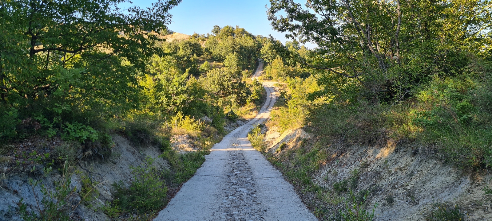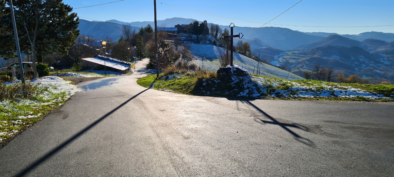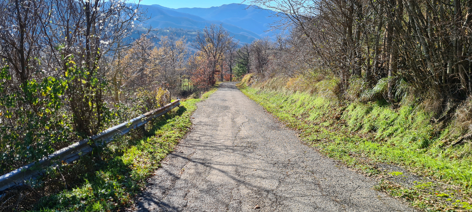 L’ultimo tratto è scarsamente segnalato, si abbandona la Marecchiese quasi subito per svoltare a destra su una nuova asfaltata, che si segue in salita per alcune centinaia di metri fino ad una curva secca, da dove si taglia sulla sinistra seguendo il crinale ed oltrepassando alcuni ruderi, su traccia con sporadici segni molto datati, che sbuca in prossimità della chiesa di San Michele Arcangelo, adiacente l’antico castello di Badia Tedalda.