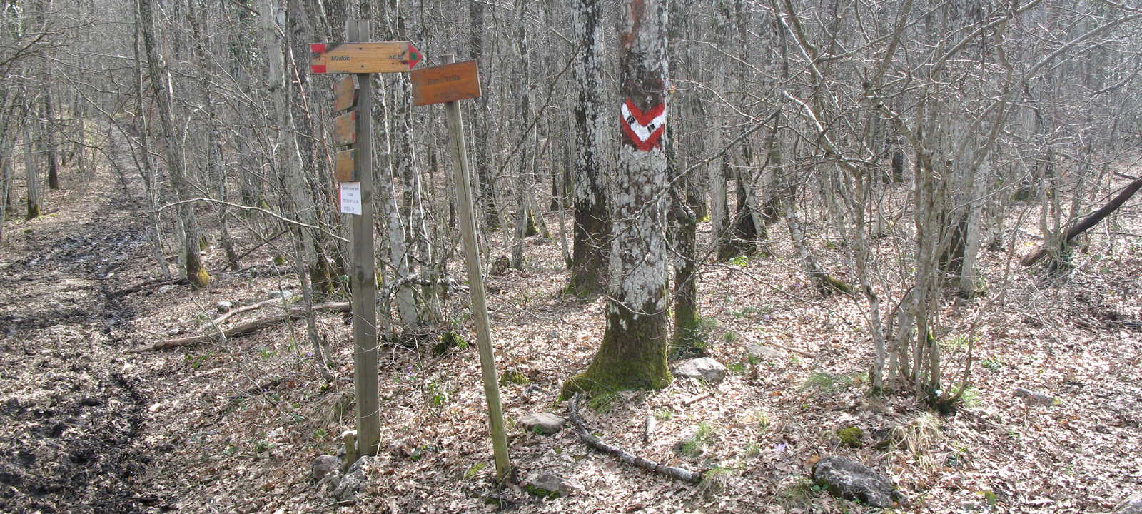 In breve si giunge all’incrocio con il sentiero 71 che scende sulla destra verso Monteromano, mentre il 17 continua a salire (qui le pendenze sono discretamente impegnative) fino alla cima del Monte Luccio, superato il quale si raggiunge un nuovo bivio, con il sentiero 7 diretto a Monterone (scende anch’esso sulla destra).