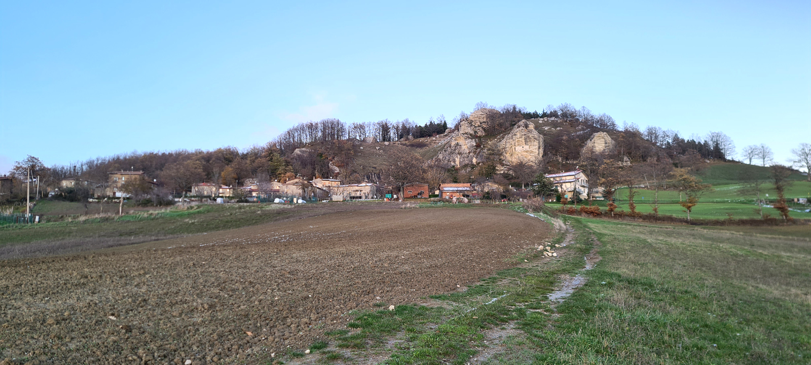 Raggiunto il paese si incrocia il sentiero 17A che conduce a Ca La Petra (a destra), si scende attraversando la strada asfaltata e si inizia un nuovo tratto in discesa, piuttosto ripido, che si inoltra nei campi fino a raggiungere l’alveo del Torrente Torbello, che si attraversa mediante guado (attenzione all’acqua ed al fango nelle stagioni umide).